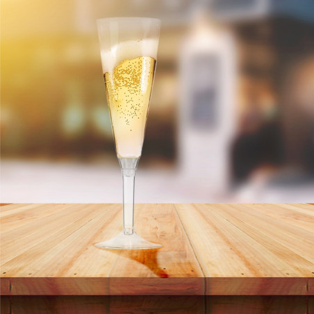 10 flûtes à champagne pied cristal (transparent), réutilisable - 15 CL