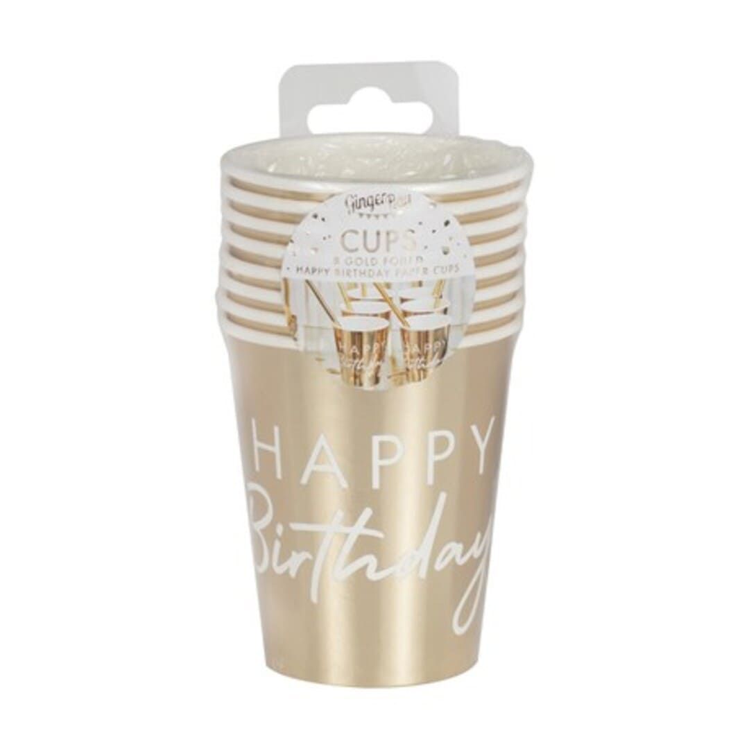 Gobelet Happy Birthday Doré - Lot de 8