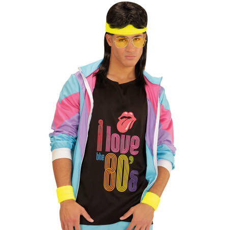 Das top für einen abend fluo oder abend 80er jahren. Das Set-Stirnband & Manschetten-Schwamm Fluo bieten eine helle farbe am tag und leuchten unter schwarz-licht.