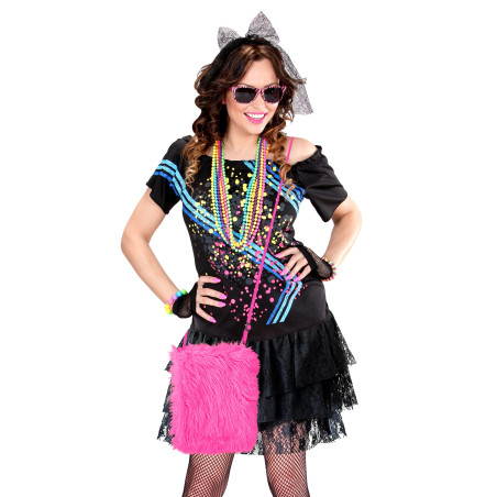 Sac à main rose fluo en fourrure