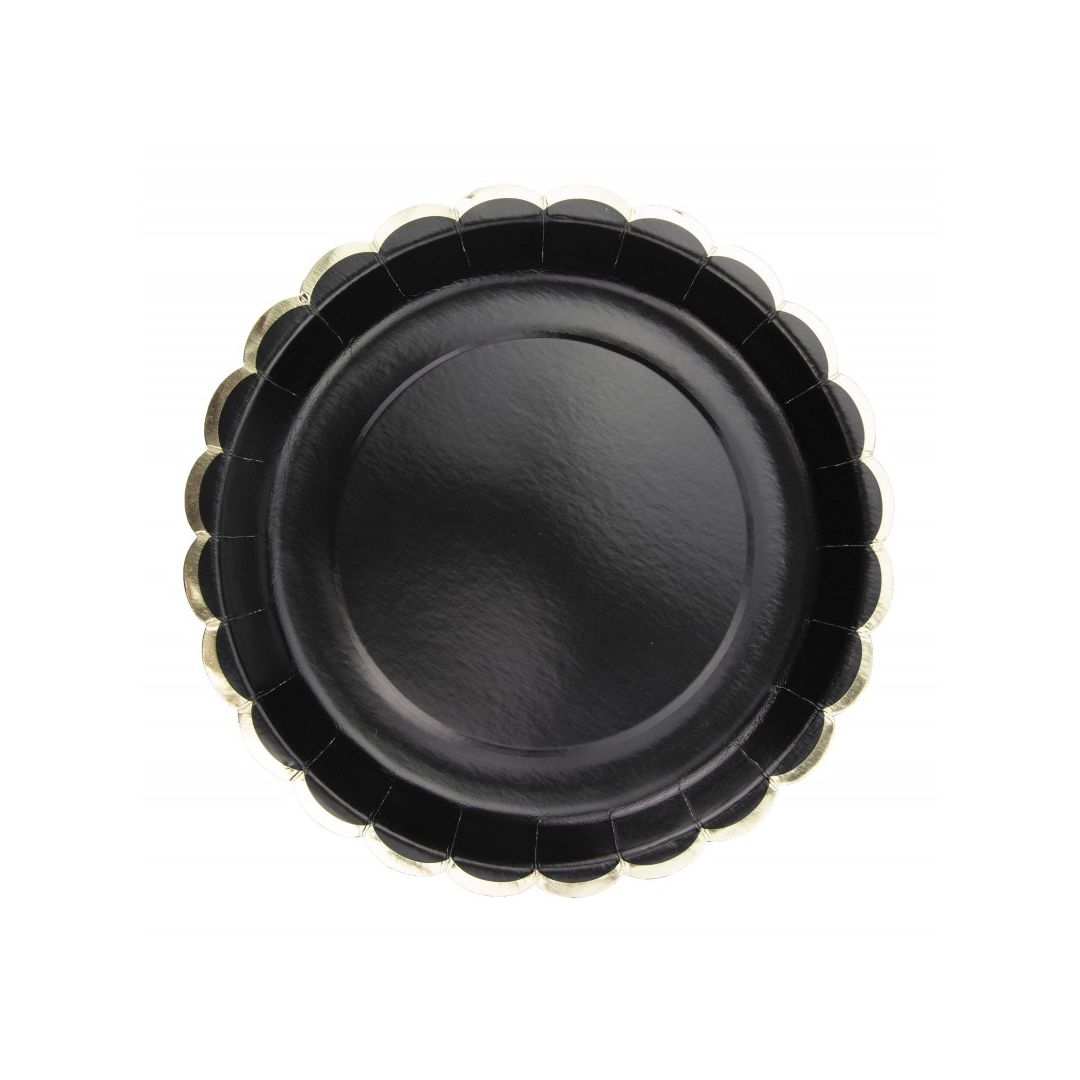 Ces jolies assiettes en carton de couleur noire à bordure festonnée dorée donneront beaucoup de charme à votre décoration pour fêter le Réveillon comme il se doit.
