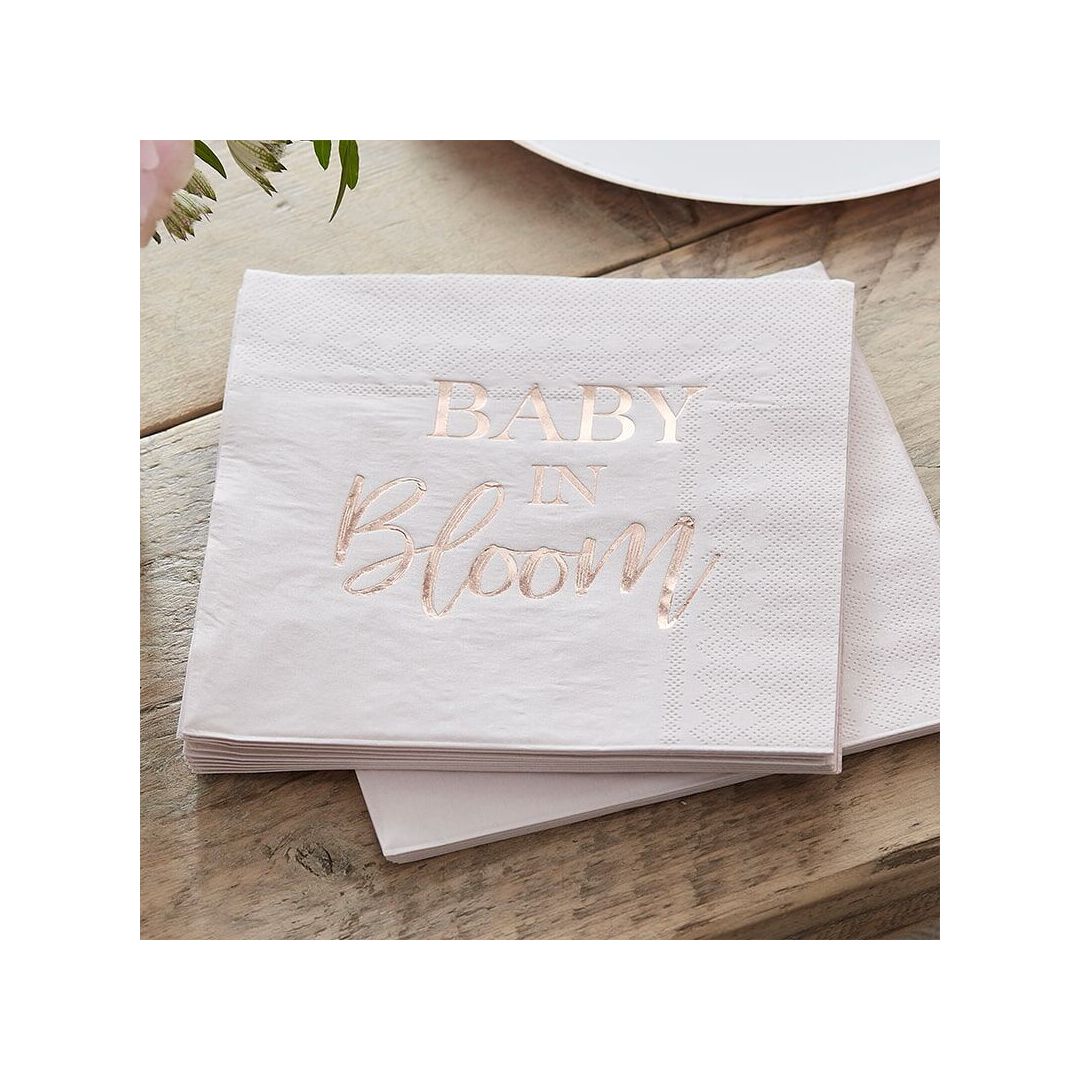 Lot de 20 serviettes blanches et dorées en forme de haut de bébé - Dimensions : 32,5 cm X 31 cm